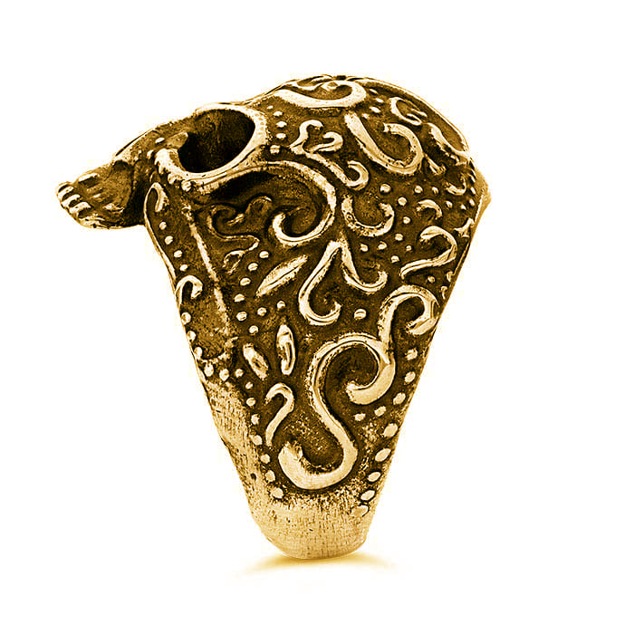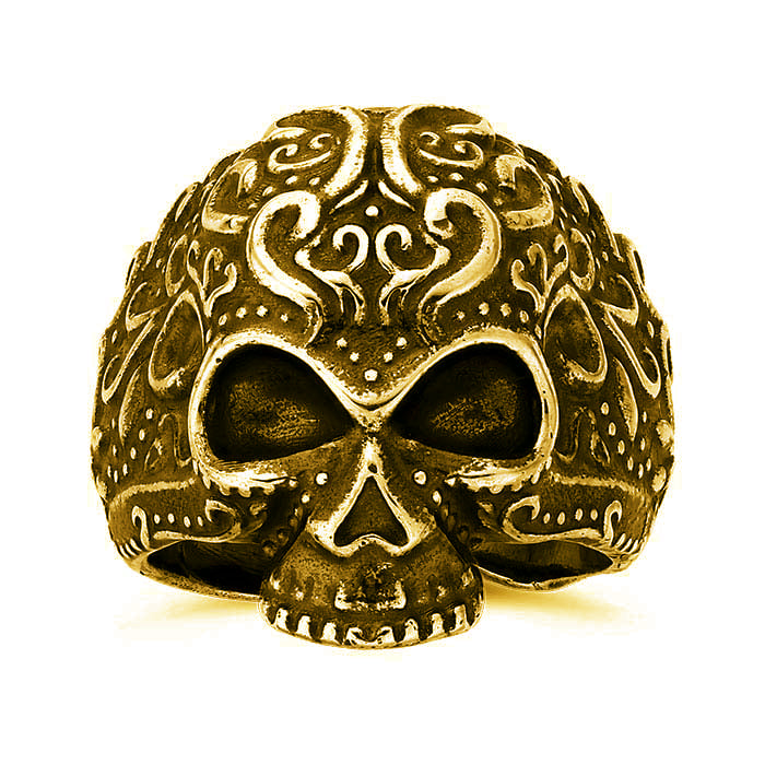 Gold Over Sterling Silver Floral Skull Ring