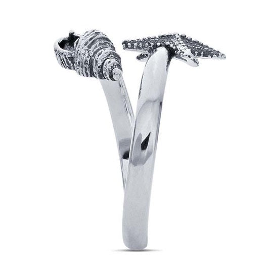 Sterling Silver Conch Shell & Starfish Bypass Ring