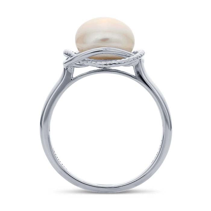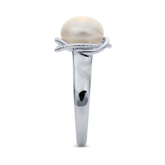 Sterling Silver Open Weave White Freshwater Pearl Ring