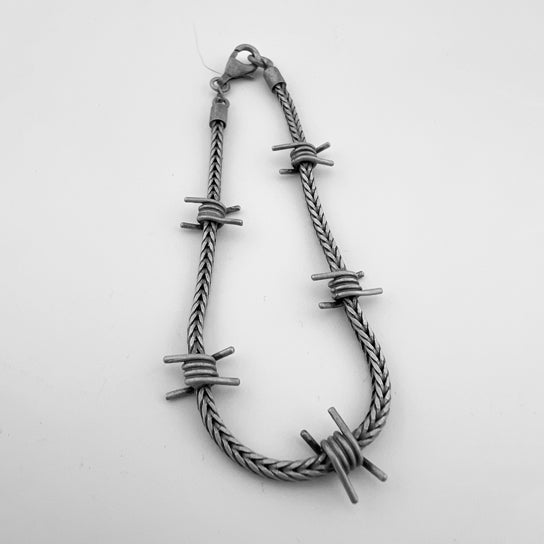 Sterling Silver Oxidized Foxtail Chain Bracelets With Barbed Wire Accents