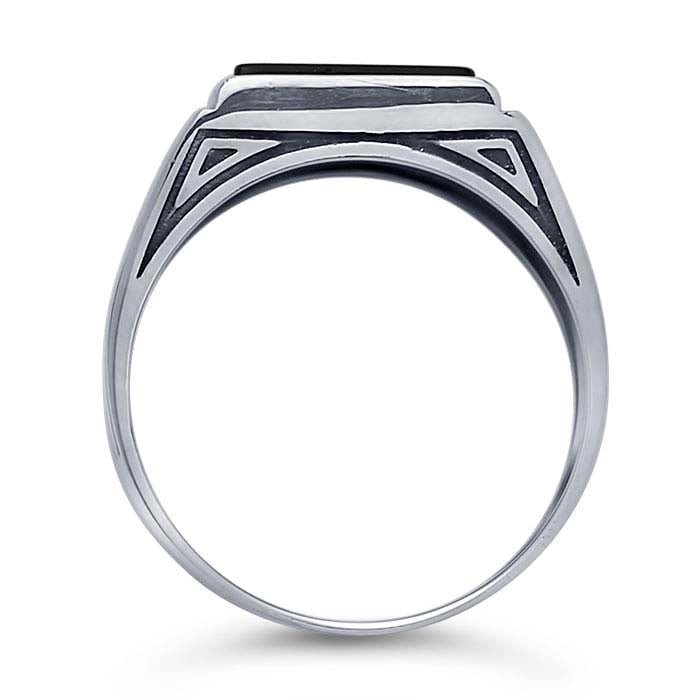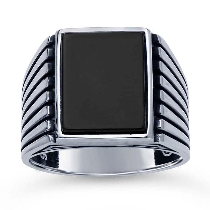 Sterling Silver Rectangle Black Onyx-Set Ring