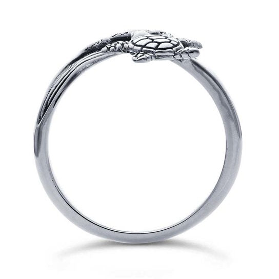 Sterling Silver Sea Turtle & Wave Bypass Ring