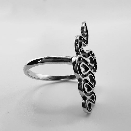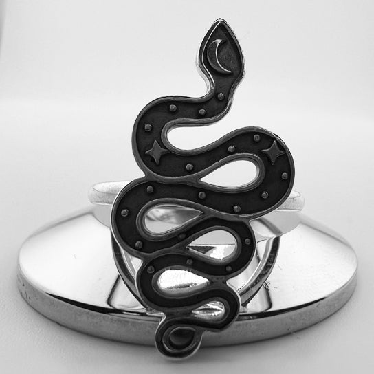 Sterling Silver Snake With Moon and Stars Ring